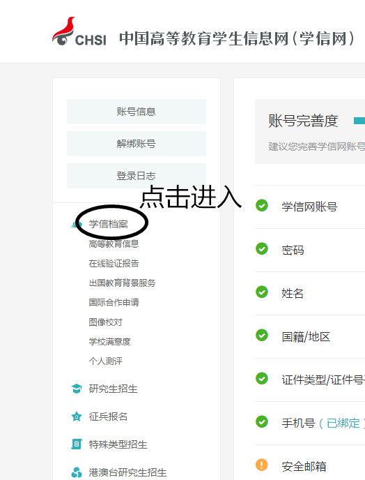 第七步:选择“学信档案”进入
