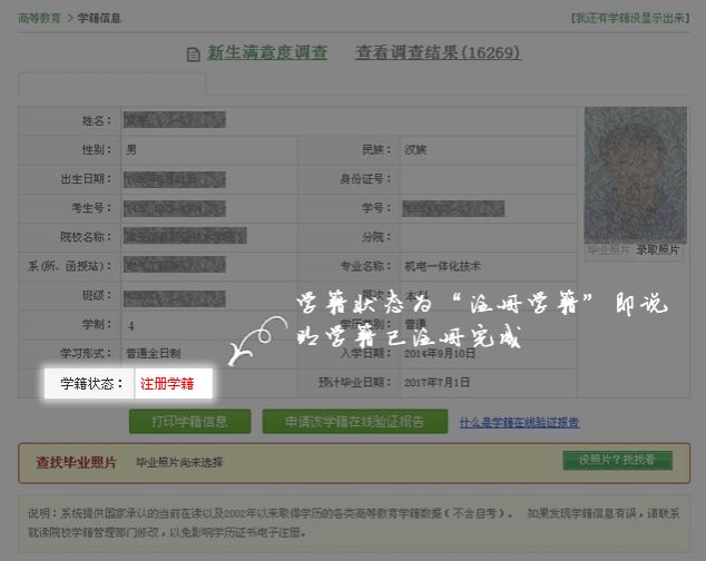 第九步:核对注册的学籍信息