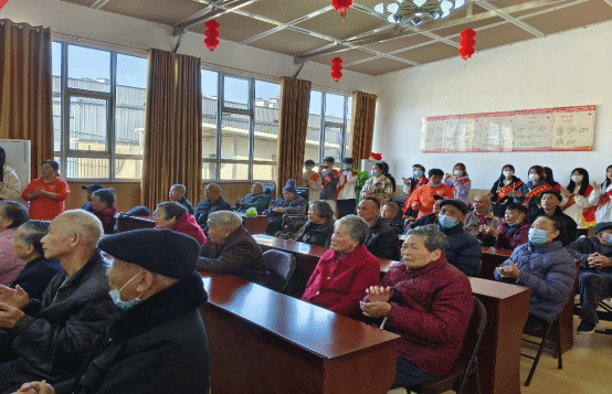 活动开始前,志愿者被分成两组,一组志愿者负责陪老人散步与老人聊天,另一组志愿者则前往会客厅进行节目排练为后面的表演做准备。在养老院工作人员的带领下,志愿者与老人们也渐渐地熟悉起来,在与爷爷奶奶聊天的过程中,大家深刻地感受到当代的幸福是老一辈人辛苦打拼出来的,应更加珍惜现在的生活。老人们也表示对志愿者的到来感到十分开心。最后全体志愿者为老人献上祝福,希望爷爷奶奶们身体健康,天天开心。