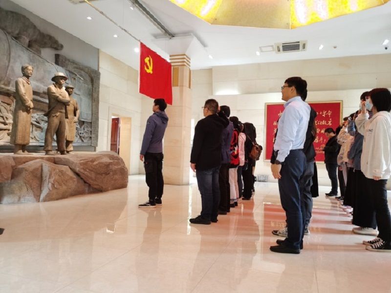 中国工人运动的燎原之火历经百年。98年前,在中国共产党领导的第一次工人运动最高潮——京汉铁路工人大罢工中,林祥谦作为江岸地区罢工总负责人,被北洋军阀逮捕。北洋军阀以死威胁逼迫林祥谦下令复工,遭到林祥谦断然拒绝,留下了“头可断,血可流,工不可复!”的名句,最终血洒大地,英勇就义。在烈士雕像前,全体师生静静哀悼林祥谦及二七大罢工的死难烈士。在讲解员的引导解说下,大家走进二七烈士纪念堂,从一幅幅珍贵的历史照片,一幕幕感人至深的革命场景,一段段可歌可泣的战斗故事中认真回顾了革命烈士浴血奋战的峥嵘岁月,回望共产党人永不褪色的初心。林祥谦展现了中国共产党人舍生取义的英雄气概,令后来无数的中共党员引以为傲、敬仰学习。活动最后,全体师生党员面向党旗和烈士雕像重温入党誓词,激昂的誓词响彻纪念馆的每一个角落,与鲜艳的党旗交相辉映。