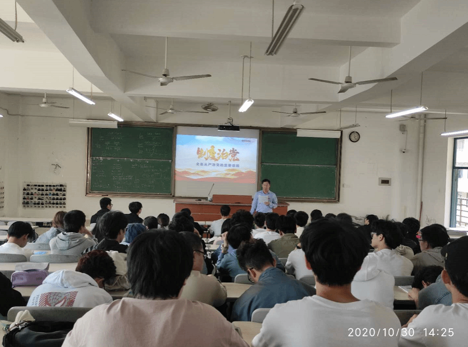 2020年10月30日下午,我院党总支书记刘祝明在诚信中介教室4给2020级烹调工艺与营养班级讲授题为《制度治党:全面从严治党的重要保障》形势与政策课。刘祝明书记结合政治时事事件和自己的体会,从“制度治党事关长远、标本兼治建章立制、与时俱进完善发展”三个方面的内容入手,深入浅出地讲授了制度治党的重要意义、我们党如何将制度建设贯穿六大纪律建设以及不断完善党内法规制度的着力点。