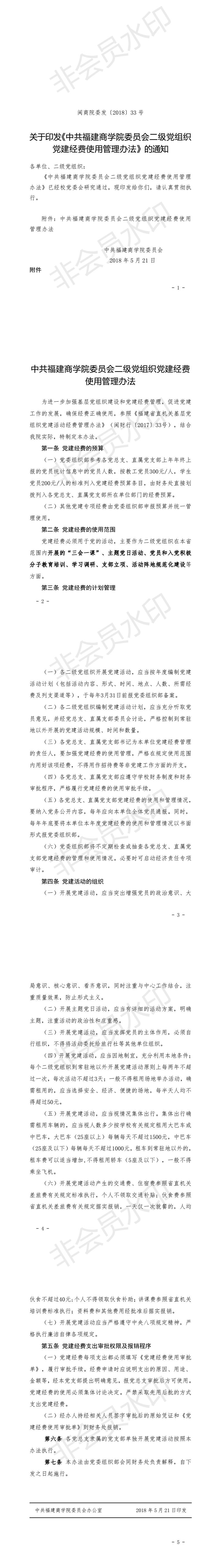 闽商院委发〔2018〕33号 关于印发《中共yl7703永利集团委员会二级党组织党建经费使用管理办法》的通