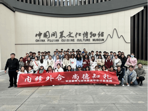 学生们在实践中先后来到海峡链谷(熵链科技)、福州春伦茉莉花茶文化创意产业园、闽菜文化博物馆、溪山温泉度假村。海峡链谷是海峡区块链产业生态公共服务平台,是数字福建创新实践基地,也是美亚爱游公司对外展示中心,学生们在公司观看了公司研创的福建智慧文旅最新成果个案展示;福州春伦茉莉花茶文化创意产业园是国家3A级旅游景区和福建省国家级非遗文化传承示范基地,学生们在现场观摩了茉莉花茶窨制技艺流程,认识了福州茉莉花茶文化,感受了福州茉莉花茶茶香和茶韵;闽菜文化博物馆由福州聚春园集团投资运营,是中国第一个以闽菜为主题的博物馆,学生们在场馆内了解了闽菜千年演化史,品鉴了闽菜构成系列图谱、闽菜故事与技艺传播数字影像、仿真菜肴、食器物件等;溪山温泉度假村是国家4A级旅游景区、五星温泉企业、职工疗休养基地,学生们现场考察了酒店温泉休闲、餐饮、住宿、会议、娱乐、亲子、拓展等设施,参加了酒店宣传介绍会,并与管理人员进行了交流。